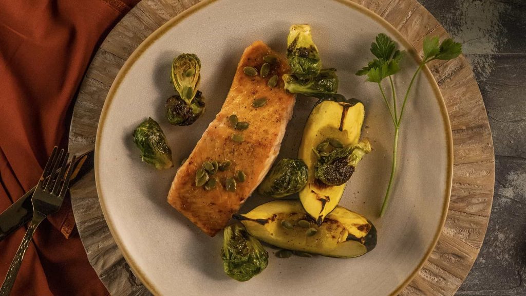Sheet Pan Salmon with Acorn Squash & Pumpkin Seeds