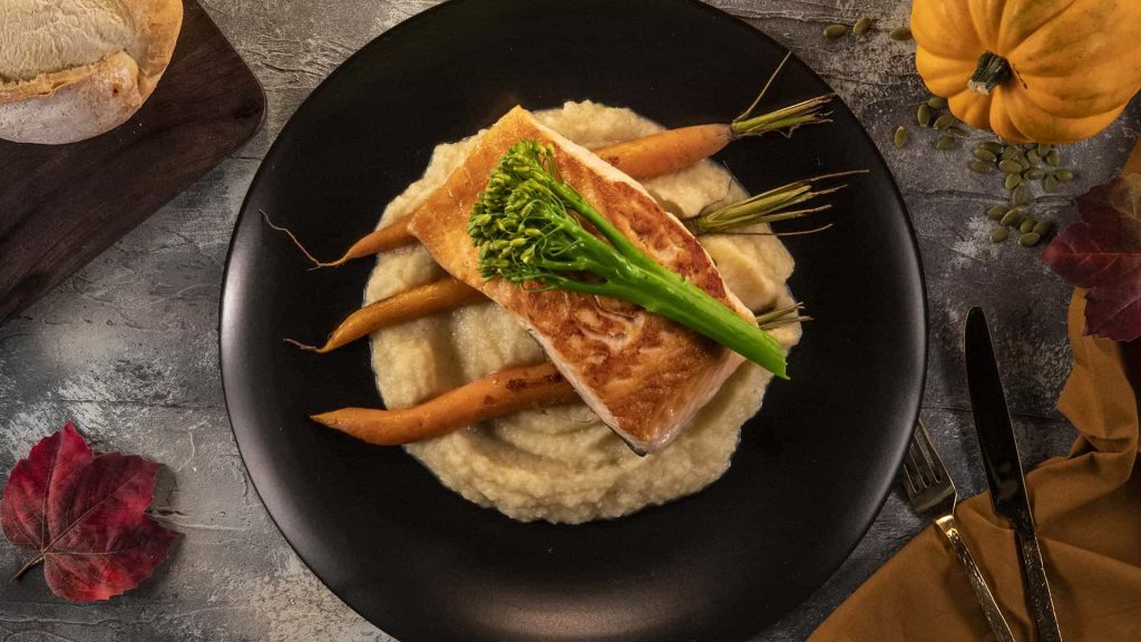 Seared Salmon with Roasted Garlic Parsnip Puree